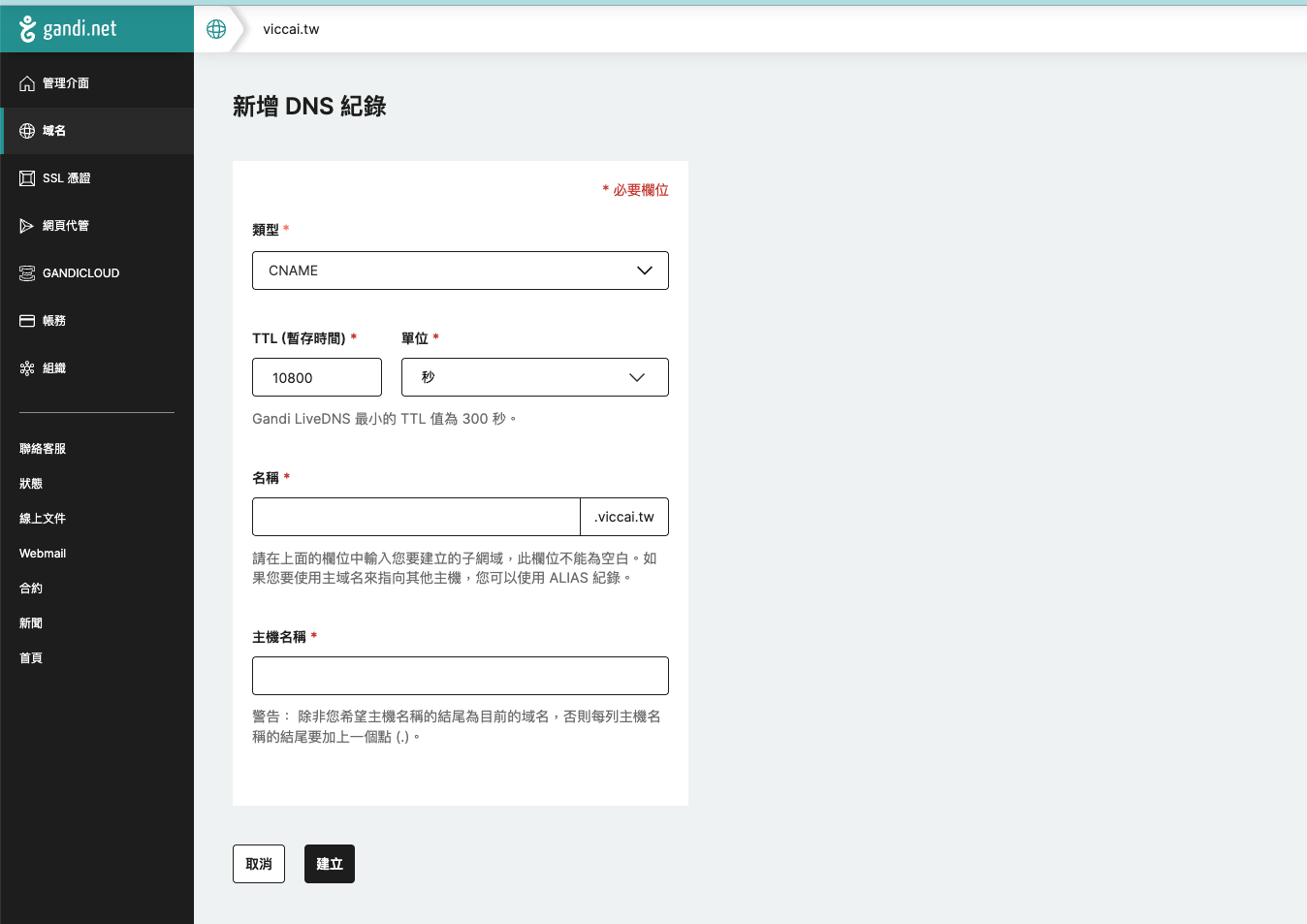 這邊就是新增一筆 CNAME 紀錄。