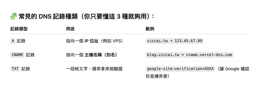 關於 DNS Type 可以參考 chat 解說: